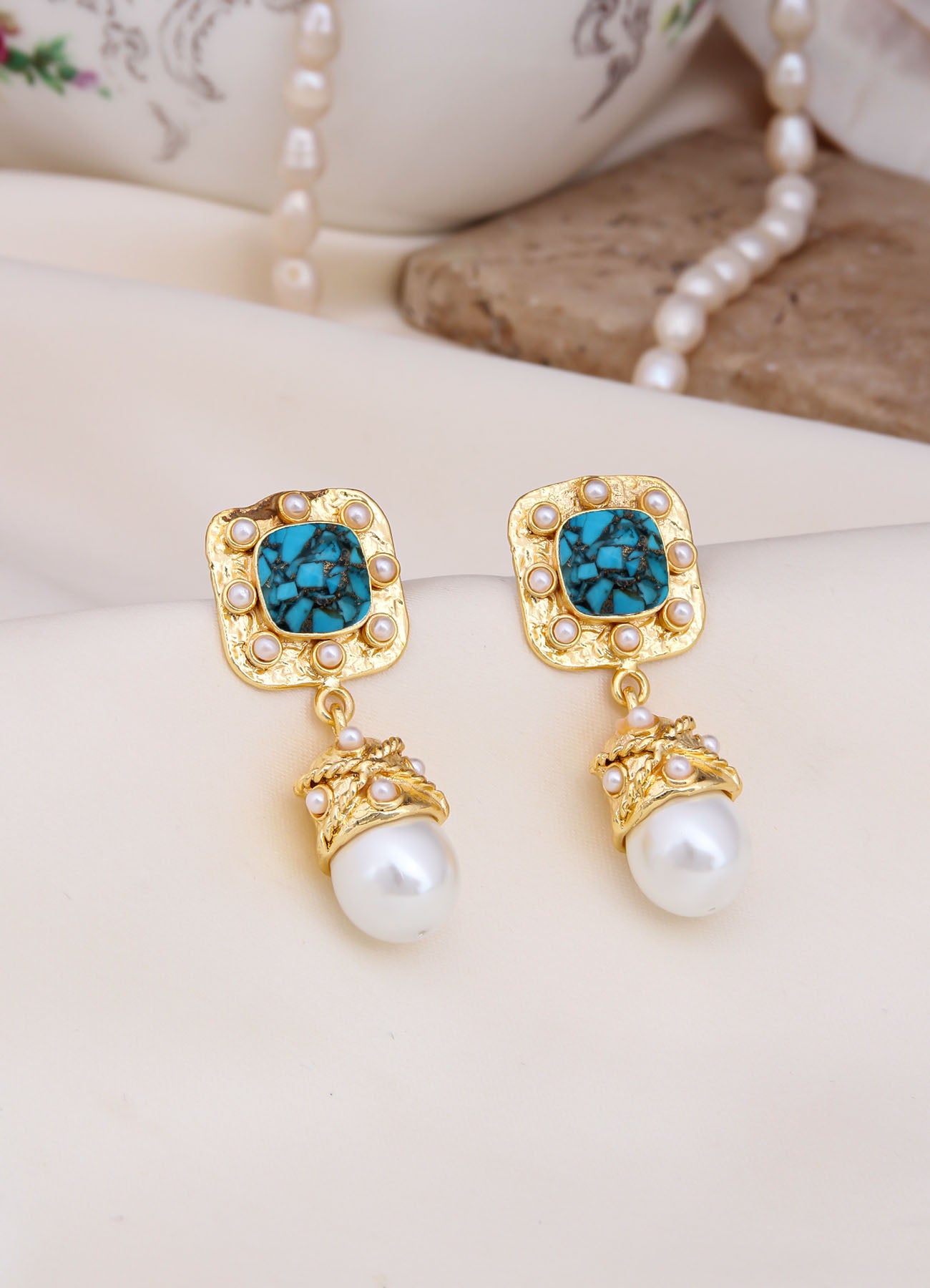 Turquoise & Pearl Earrings
