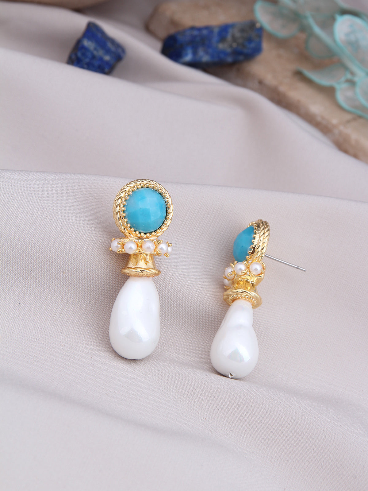 Blue Opal & Pearl Earring