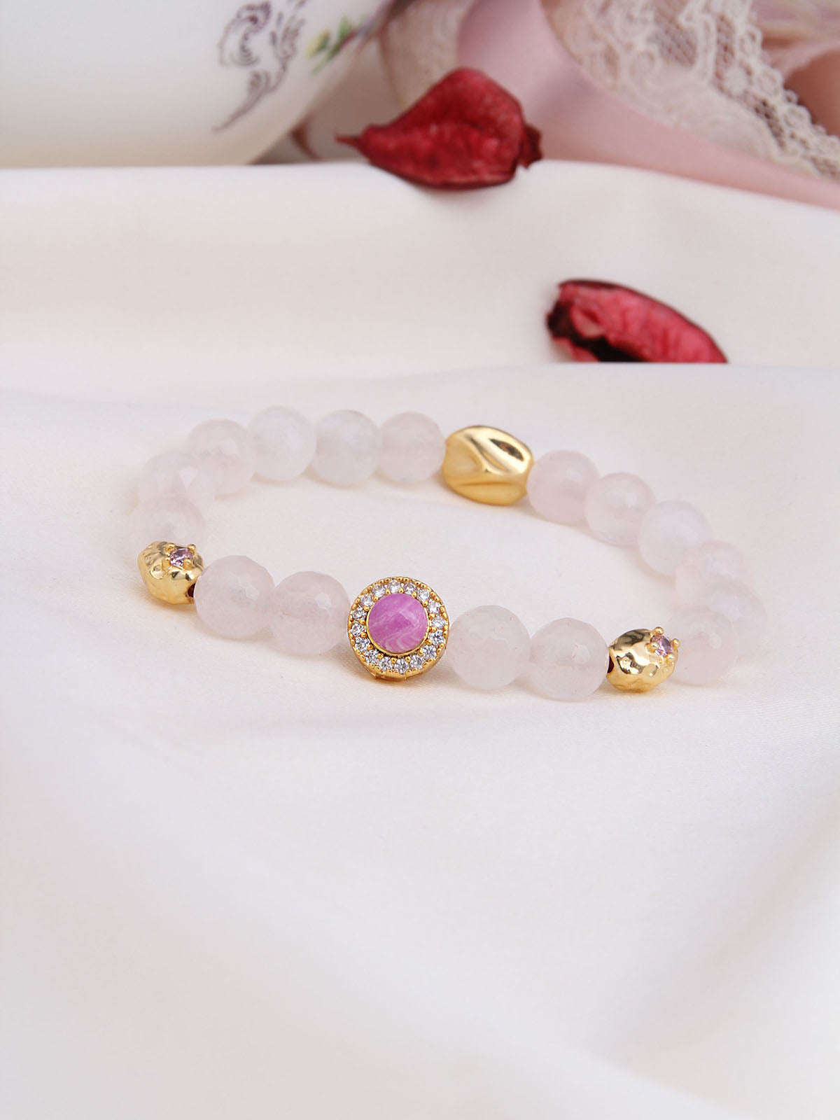 Pink Quartz & Zircon & Varasite Bracelet