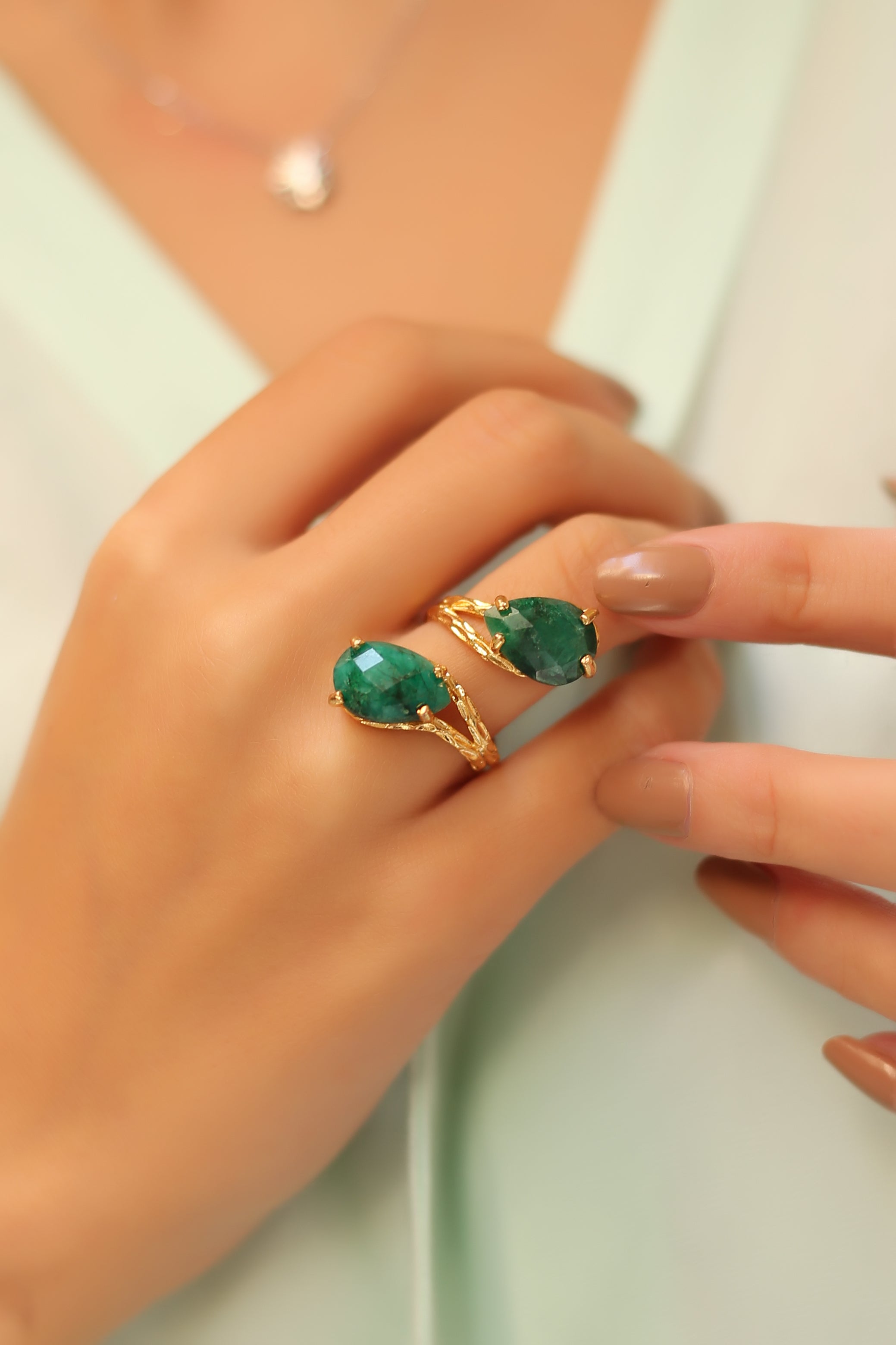 Dimensioni: regolabile Tipo di pietra: Agata Colore pietra: verde Materiale: ottone e rame Colore materiale: oro Tonalità...