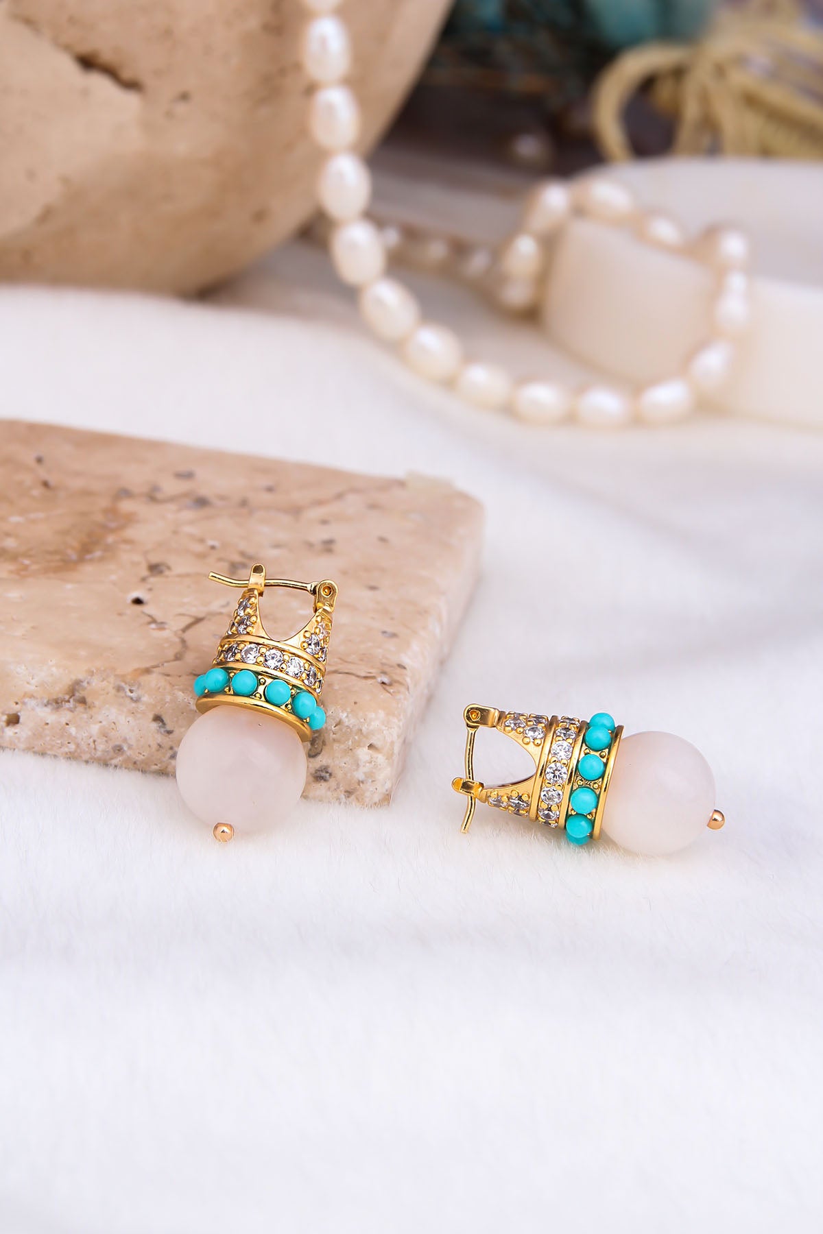 Pink Quartz & Zircon & Turquoise Boucles d'oreilles
