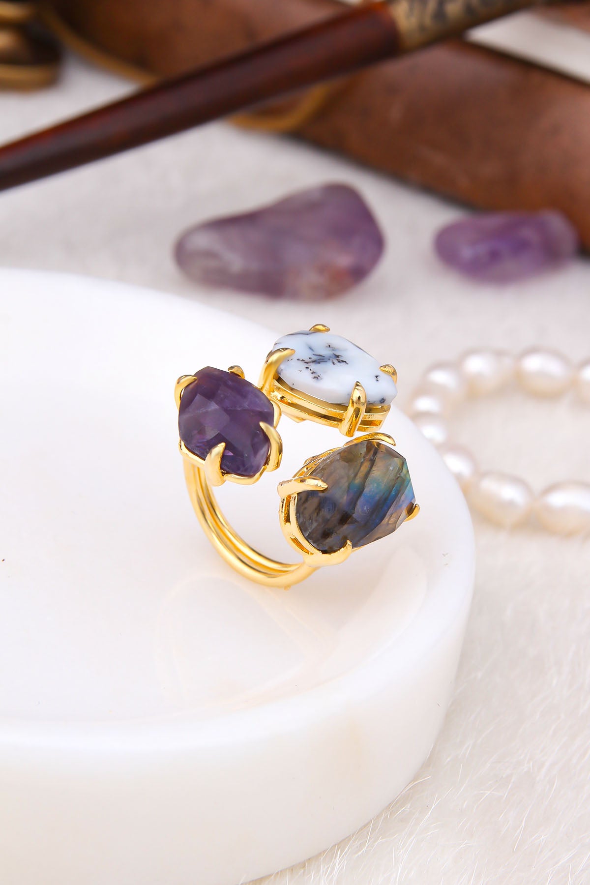 Dendrite Stone & Amethyst & Labradorite Bagues