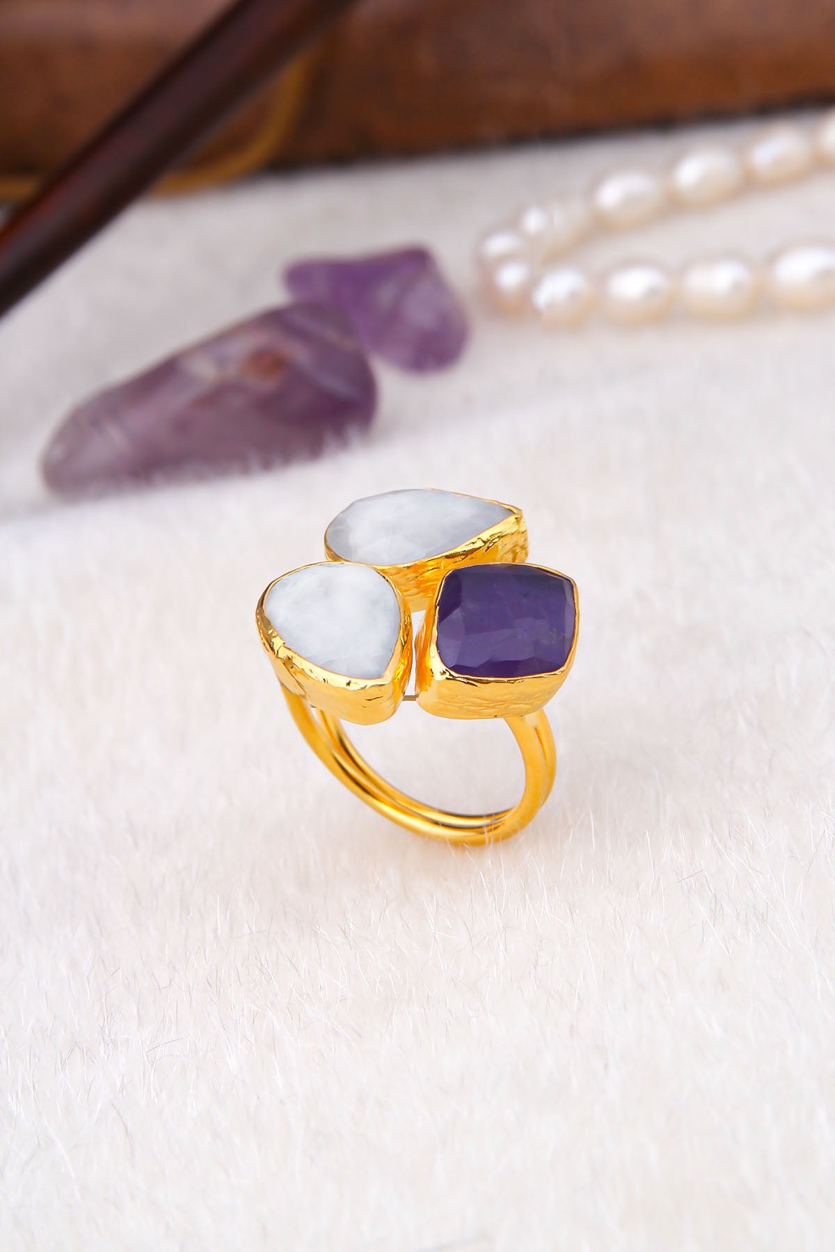 Moon Stone & Amethyst Bagues
