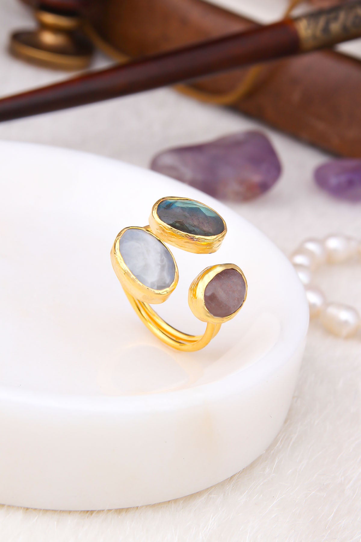 Moon Stone & Labradorite Bagues