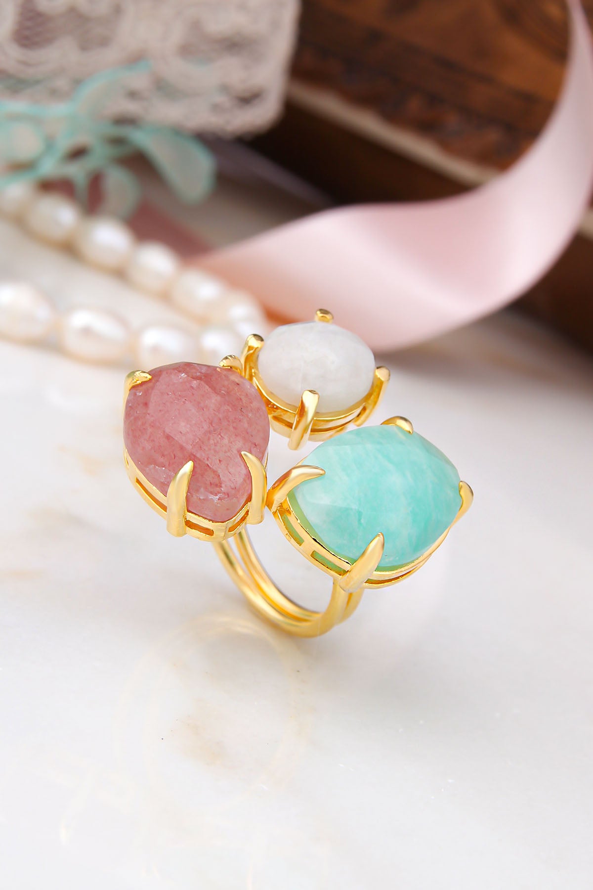Moon Stone & Sun Stone & Amazonite  Bagues