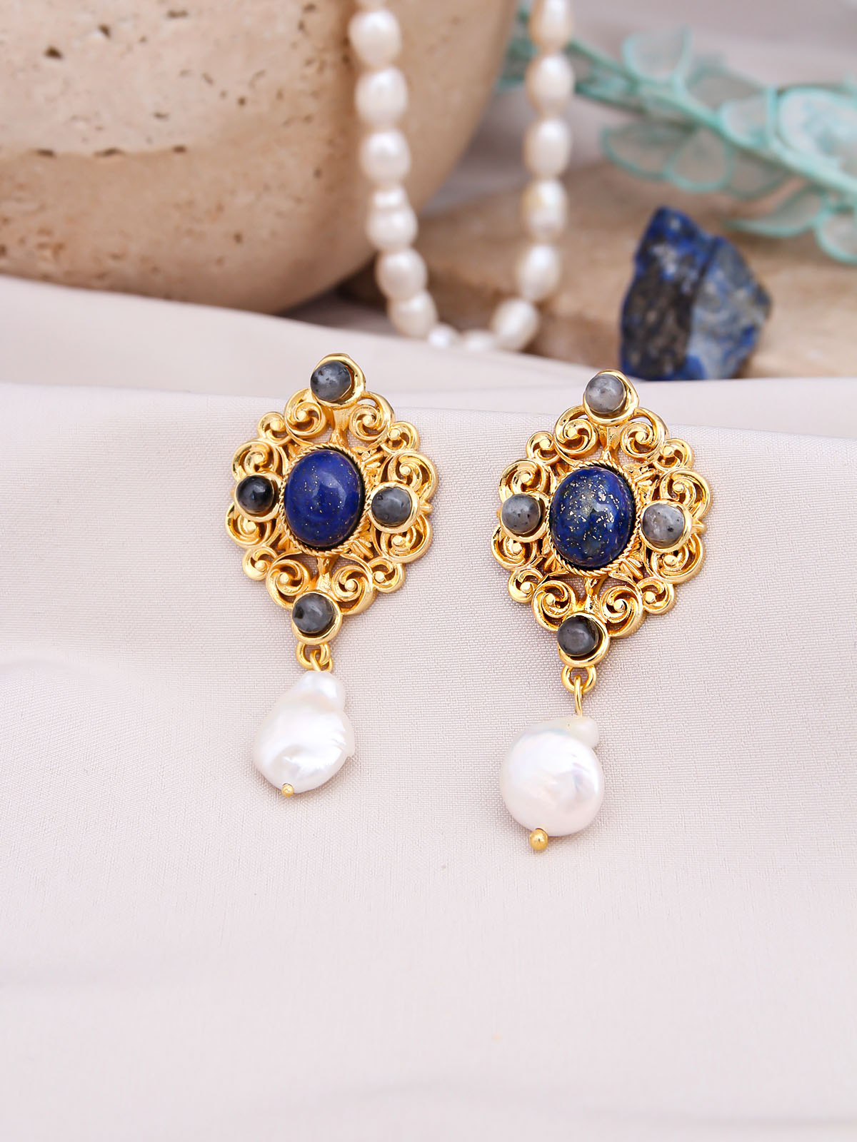 Lapis & Pearl Boucles d'oreilles