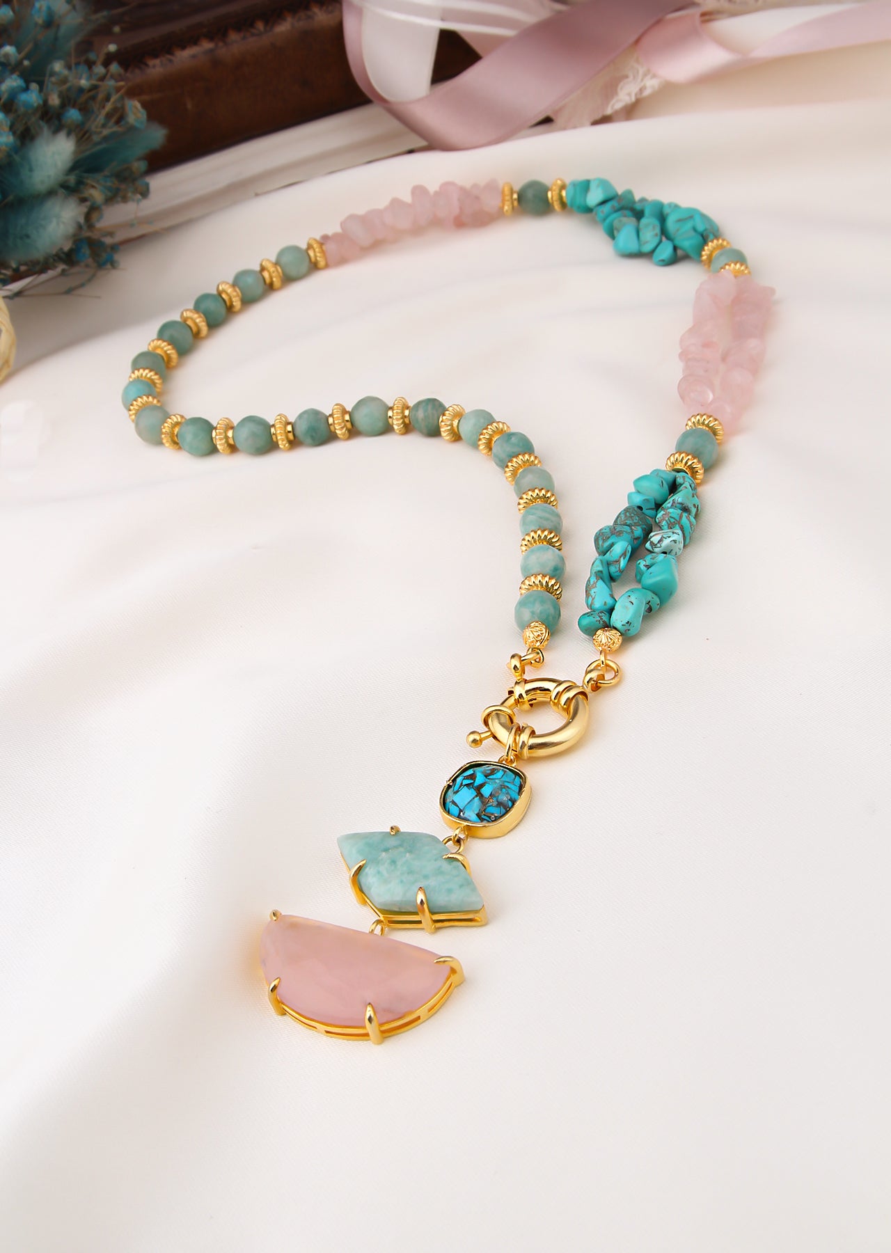 Pink Quartz & Amazonite & Turquoise Collier