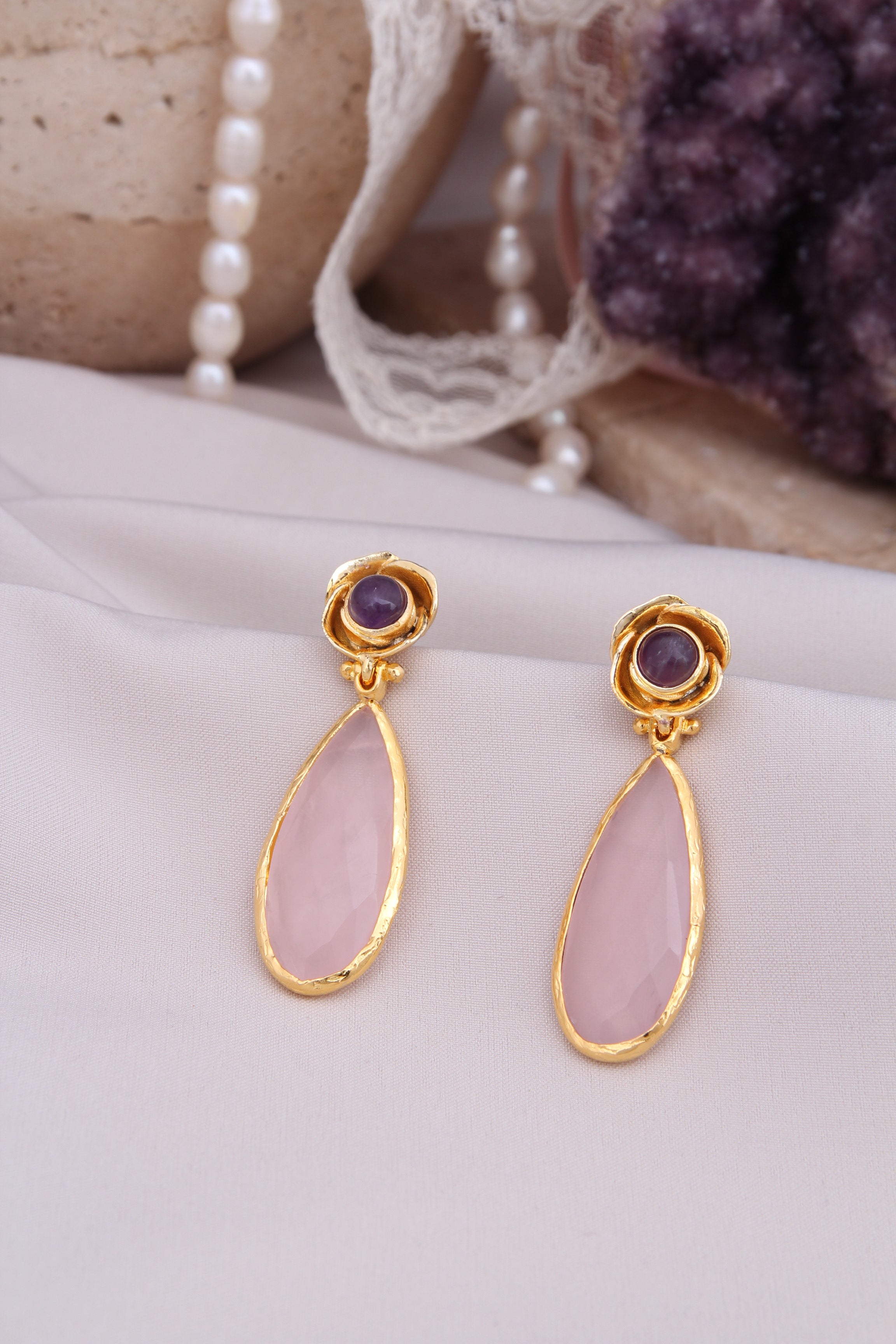 Pink Quartz & Ametiyhst Boucles d'oreilles