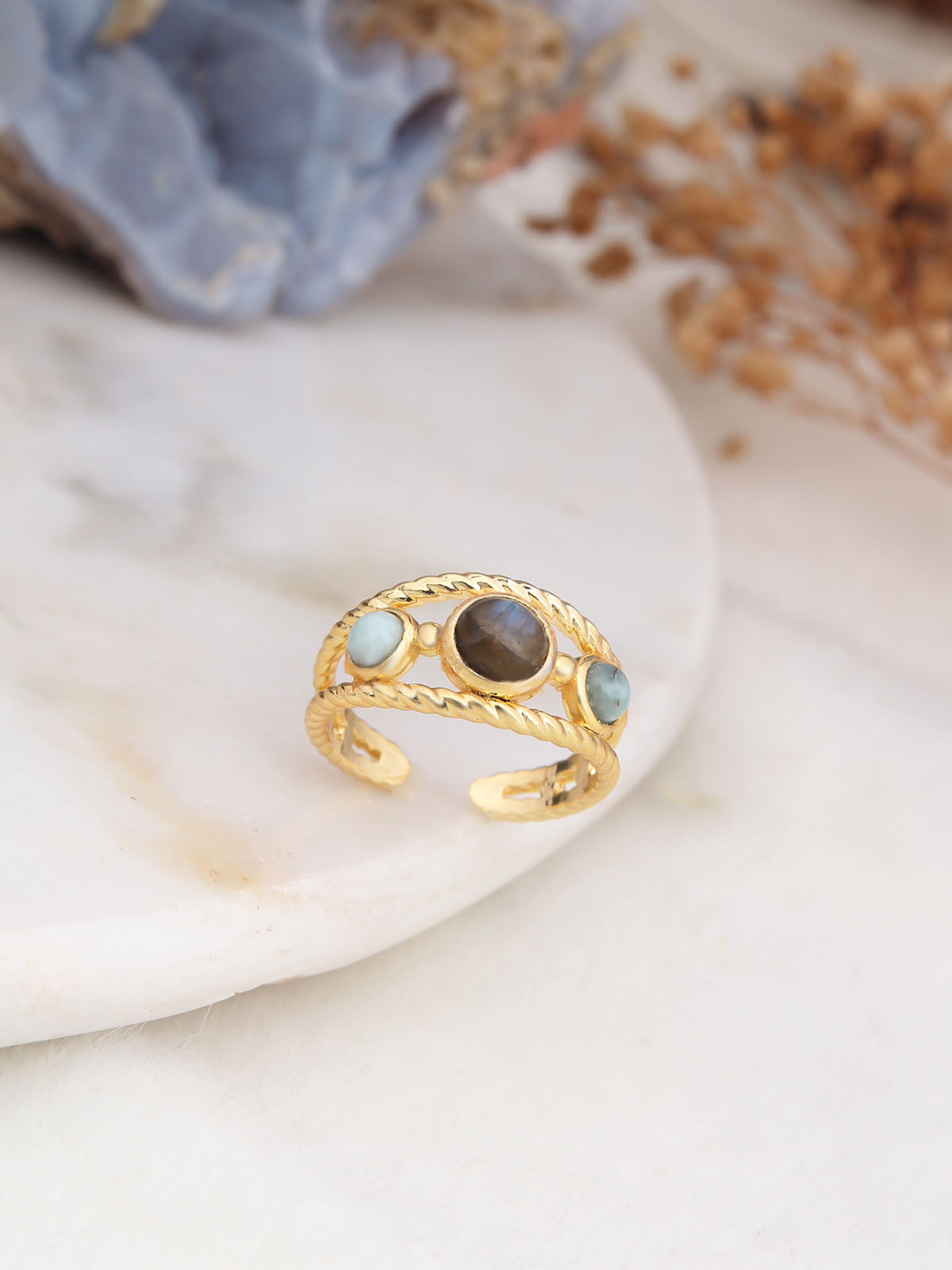 Labradorite & Larimar Ring