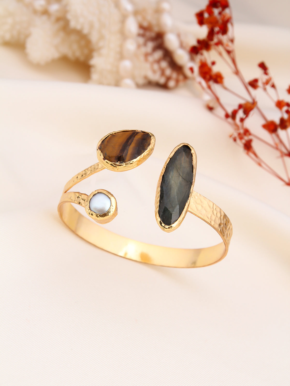 Tiger Eyes & Labradorite & Pearl Bracelet