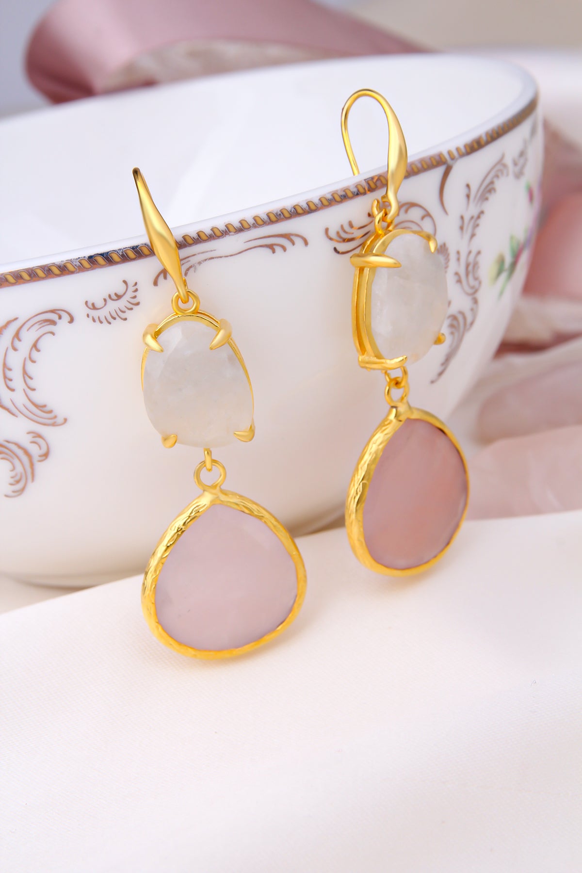 Moon Stone & Pink Quartz Boucles d'oreilles