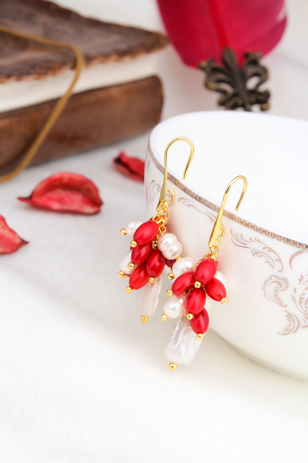 Coral & Pearl Boucles d'oreilles